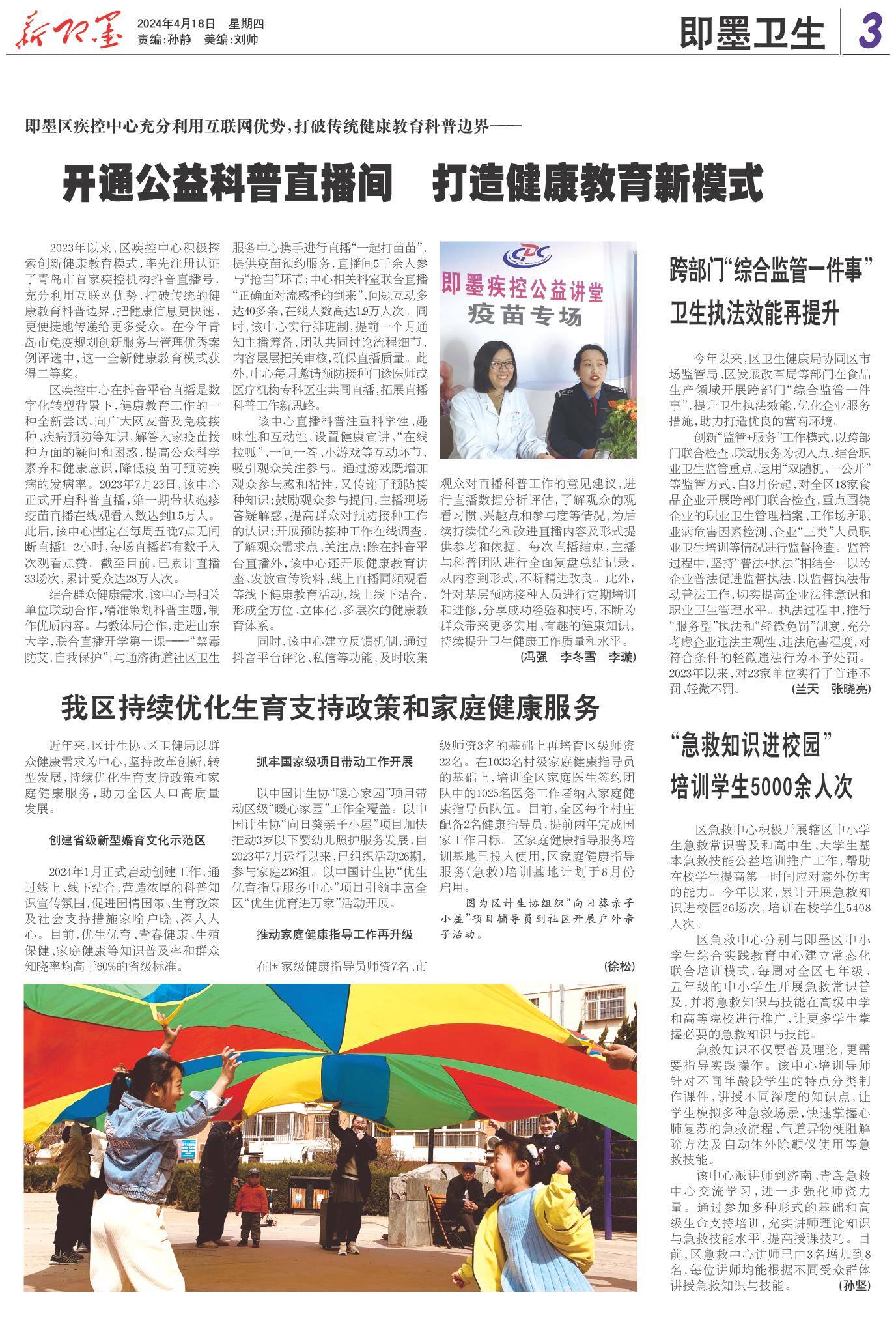 即墨融媒4月18日讯(通讯员 徐松)近年来,区计生协、区卫健局以群众健康需求为中心,坚持改革创新,转型发展,持续优化生育支持政策和家庭健康服务,助力全区人口高质量发展。