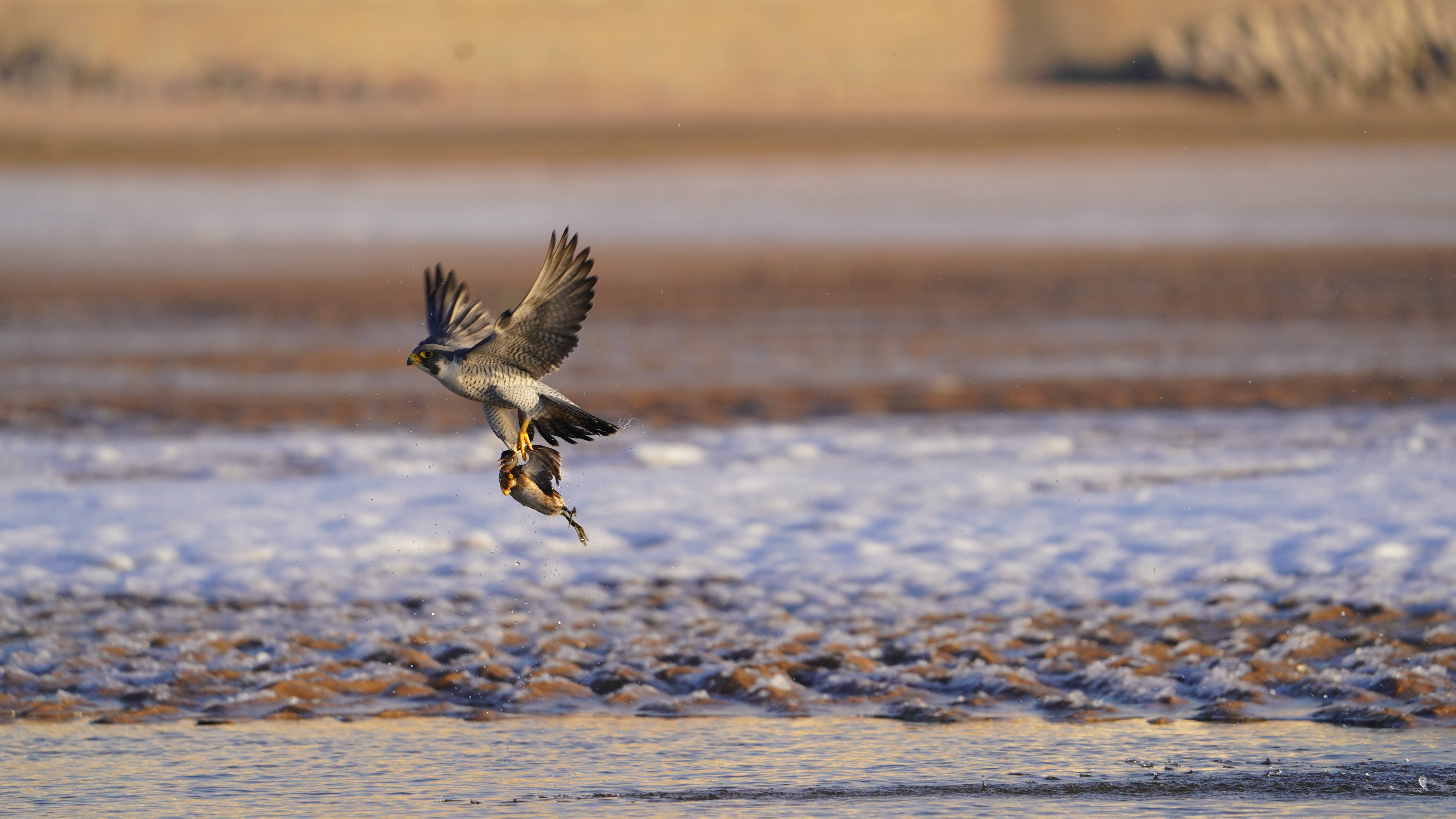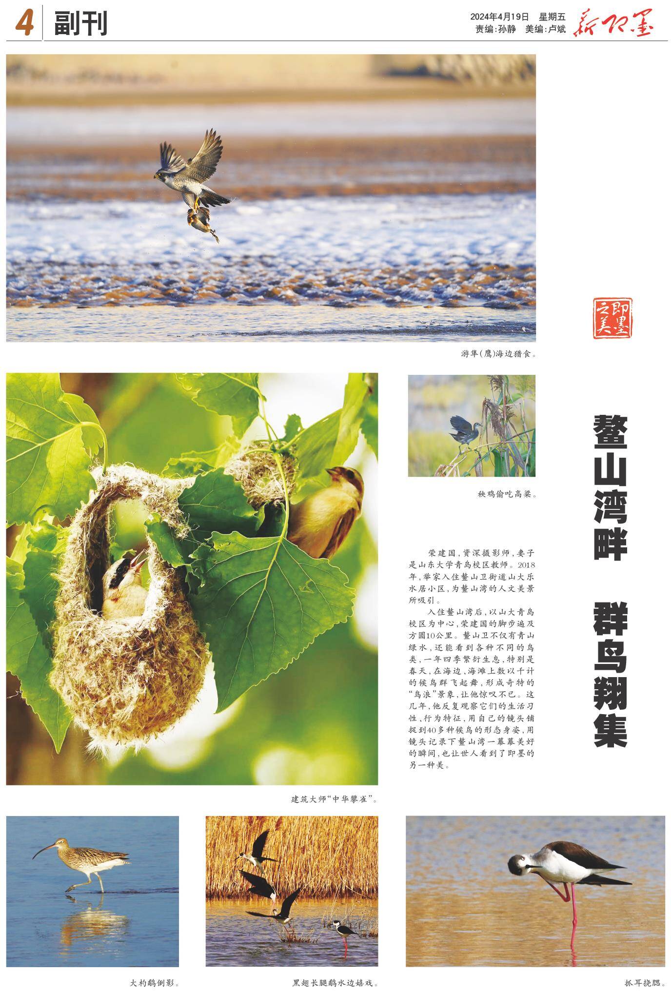 入住鳌山湾后,以山大青岛校区为中心,荣建国的脚步遍及方圆10公里。鳌山卫不仅有青山绿水,还能看到各种不同的鸟类,一年四季繁衍生息,特别是春天,在海边、海滩上数以千计的候鸟群飞起舞,形成奇特的“鸟浪”景象,让他惊叹不已。这几年,他反复观察它们的生活习性、行为特征,用自己的镜头铺捉到40多种候鸟的形态身姿,用镜头记录下鳌山湾一幕幕美好的瞬间,也让世人看到了即墨的另一种美。