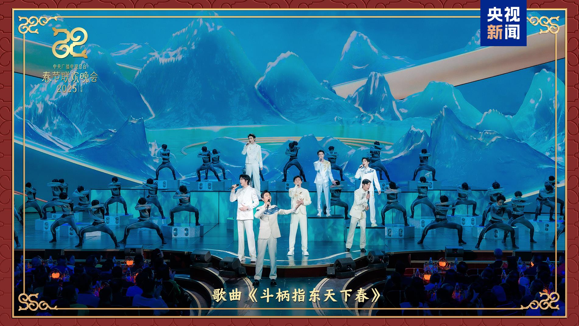 武术《笔走龙蛇》中,甄子丹与众武者以舞台为砚,一招一式刚柔并济、挥洒自如,以太极武术的力与美,将李白《草书歌行》中的“笔走龙蛇”具象化,展现中国书法墨染千里、写意山河的神与魂。歌曲《斗柄指东天下春》再现中国古代天文历法智慧,朱亚文、白宇、刘宇宁、蒋奇明、许凯、丁禹兮、王安宇化作北斗七星,在虚实结合的影像空间里上演四季变换与星象流转,带观众走向充满生机与希望的乙巳蛇年。整场晚会中,百余种非遗巧妙出现,与大家共度热热闹闹的“非遗版”春节。