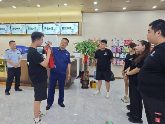 培训中,区消防救援局宣传科为影院员工详细演示了灭火器、消防栓和水带的使用方法,影院负责人带领员工学习了影城消防应急预案、逃生路线和安全隐患排查等相关知识。随后,影院开展了灭火演练和逃生演练。