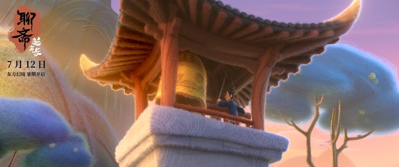 同日曝光的“崂山道士”篇海报,展现了王承与王妻的鲜明人物性格。前景是身穿道袍的王承,骑在仙鹤身上,手持书卷,得意洋洋。后景是王妻横眉怒目的大特写,一喜一怒的强烈对比颇具喜剧色彩。值得一提的是,预告与海报的画面均呈现出独特的毛毡艺术风格,角色毛茸茸的憨萌感与滑稽神态相映成趣。道观砖墙的粗粝“拉丝”,人物面部的细微“毛躁”,不仅凸显了追光动画顶尖的制作水准,也让动画角色和场景更添一份童话般的纯真与可爱,令网友感叹“这是什么国产动画电影的细糠竟然被我吃到了!”这种毛毡美学在国产动画电影史上尚属首次,为大银幕注入前所未有的触感想象力,是暑期档“影院必看”的惊喜之作。
