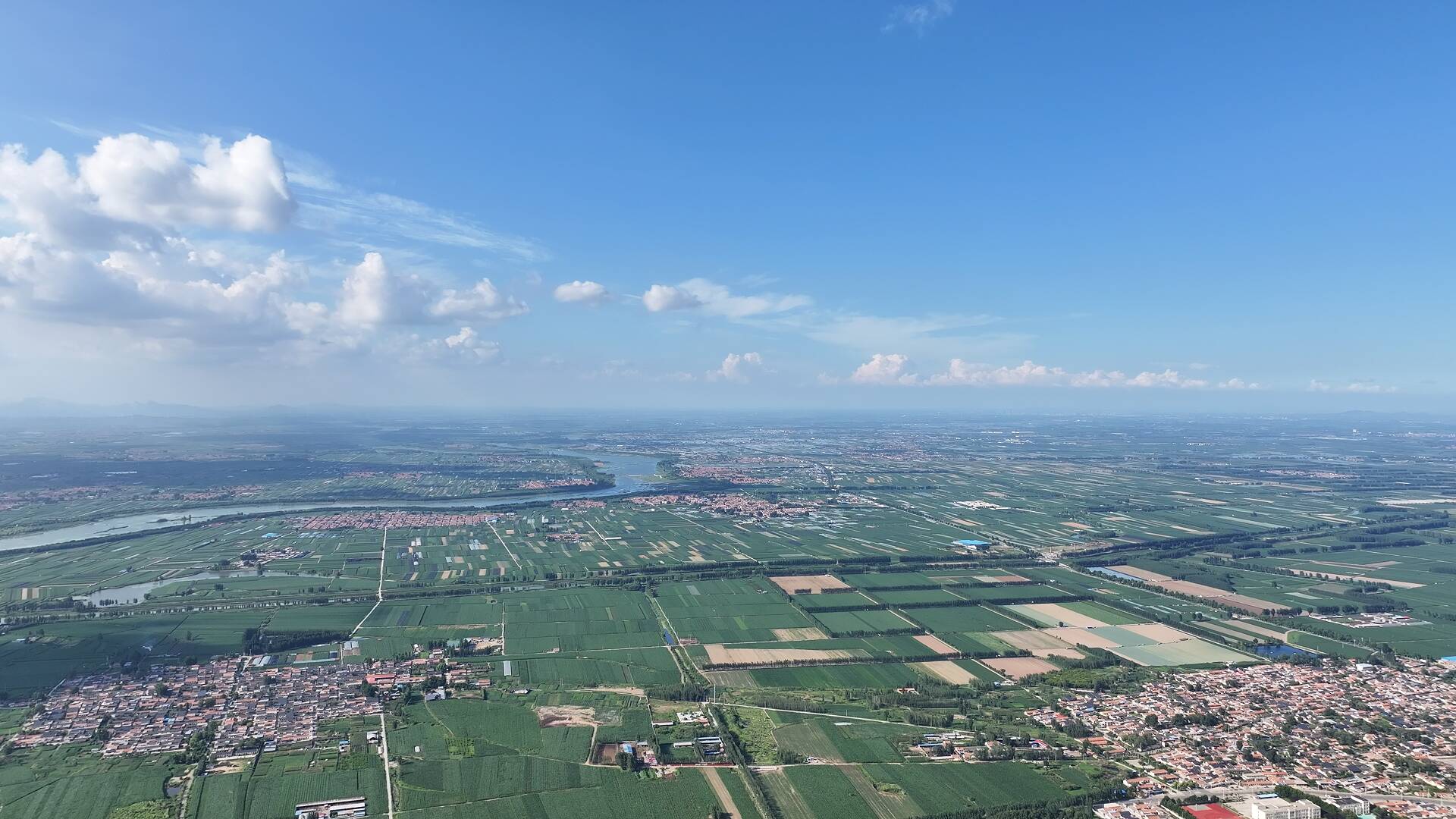 白云沃野缠玉带(航拍摄影)