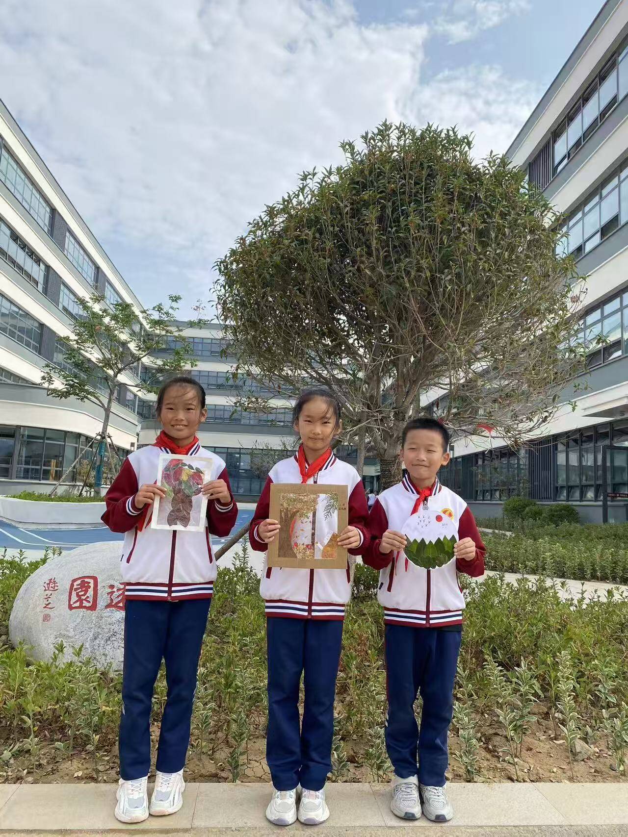 活动过程中,孩子们穿梭于校园草木间探寻秋迹:有的驻足枝叶旁,兴奋地指着秋意分享发现;有的收集形态各异的落叶,制作出树叶贴画、叶拓等创意作品。完成创作后,大家或是组队展示手中的作品,或是围坐在一起交流“秋天故事”,稚嫩的话语与灿烂的笑容里,满是对秋日的喜爱。