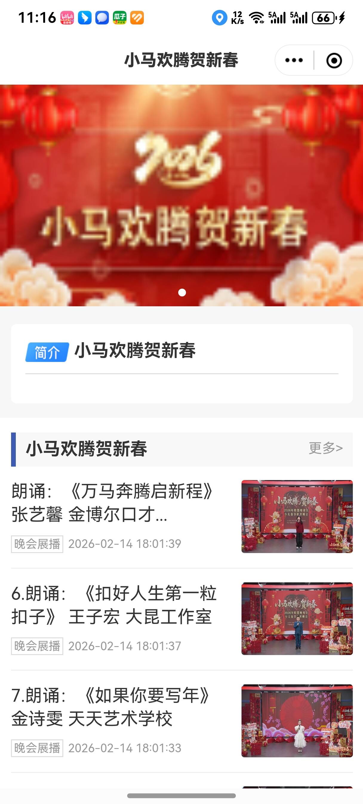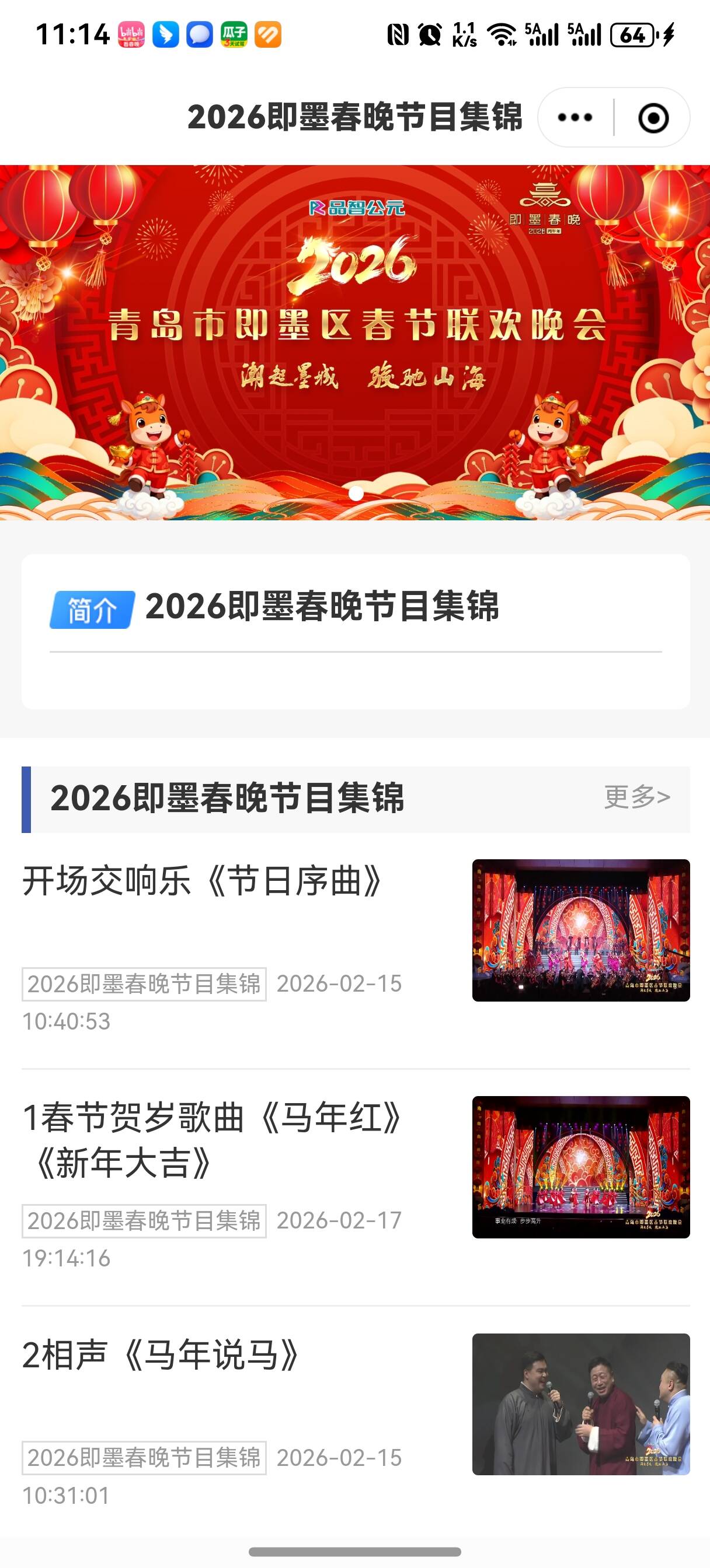 四是春晚荧屏焕彩,打造团圆文化“盛宴”。电视端同样精彩纷呈。紧扣新春家庭团圆的情感内核,提前谋划、精心打造电视文艺精品,以丰富的荧屏内容为市民送上新春文化大餐。节前录制《2026即墨区春节联欢晚会》《即墨区2026少儿春晚》等近10场特色文艺晚会,涵盖歌舞、戏曲、语言类等多元形式,融入即墨柳腔、大鼓书等非遗元素,于黄金时段在电视荧屏播出。晚会还在知即墨APP同步上线,观看量达到10万人次,实现了从“居家收视”到“云端共享”的延伸,进一步扩大了本土文化的覆盖面和受众的触达率。