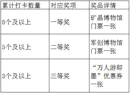 游客打卡完成,累计达到对应数量后,可持打卡手机到即墨区融媒体中心(鹤山路广电大厦)703室(工作日)领取相应奖品,先到先得,领完为止。咨询电话:053287568557。领奖截止时间2026年5月10日。