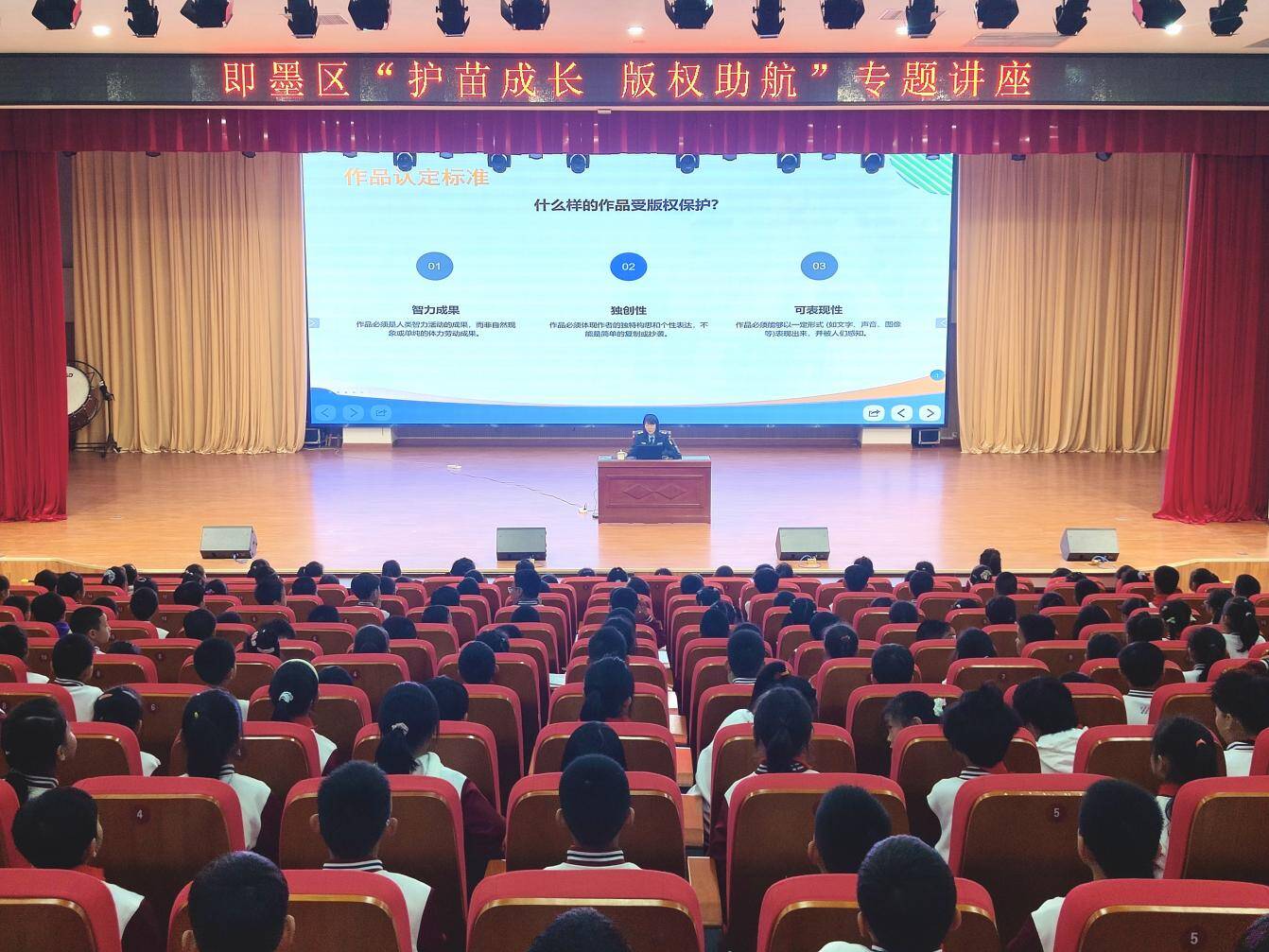 即墨融媒4月22日讯 (即墨融媒记者 安美泉 通讯员 郭吉鹏)4月22日下午,由区委宣传部、文化和旅游局、教育和体育局联合组织的全环境立德树人“护苗成长 版权助航”专题讲座,在第二实验小学举办,400余名师生参加讲座,本次活动提升了青少年的版权保护意识。