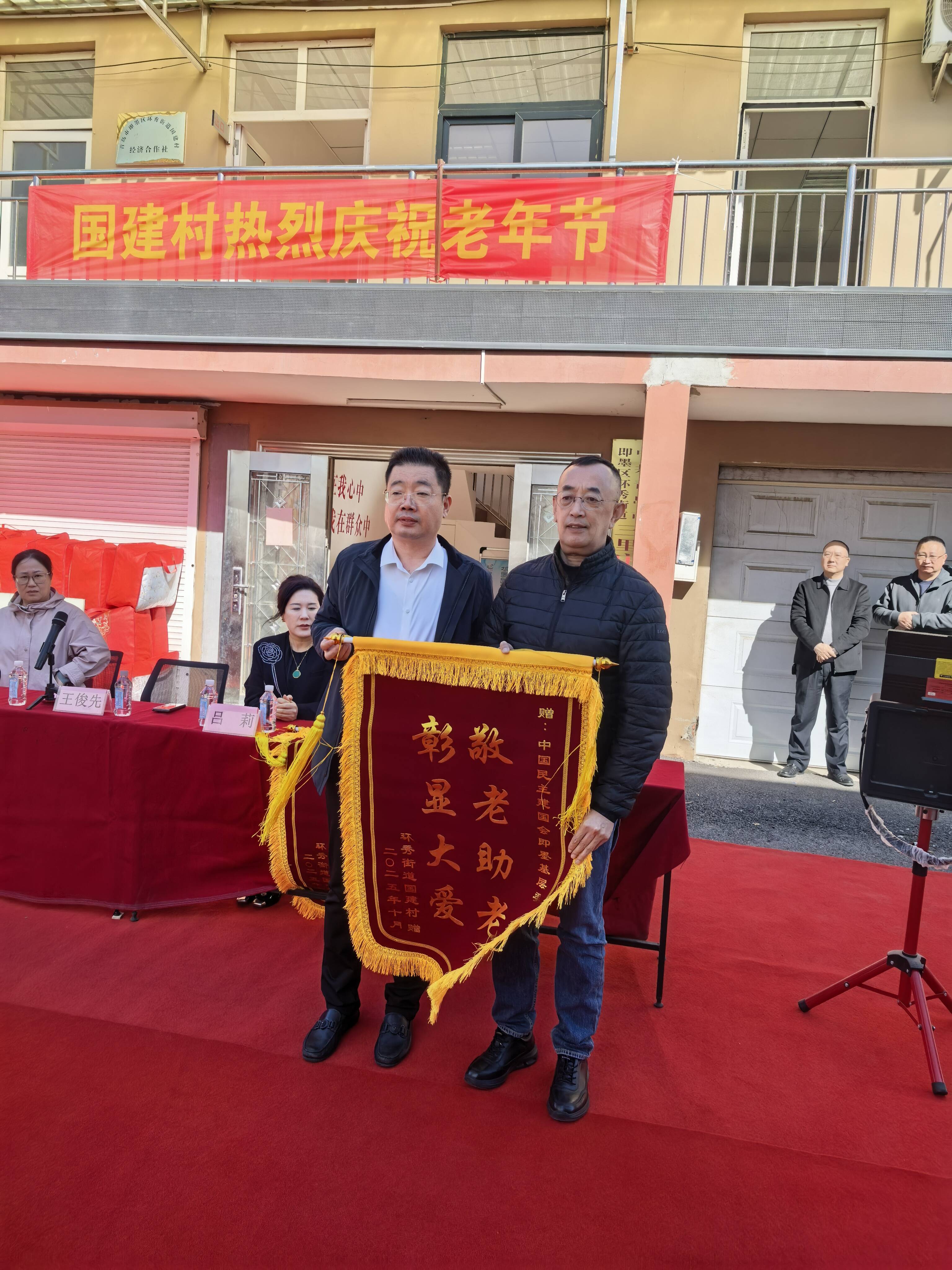 10月22日上午,重阳节前夕的环秀街道国建村已然洋溢着节日的温馨氛围。即墨民建会员带着精心准备的节日礼品与诚挚的问候,早早来到村里,为老年人送上关怀。此次准备的礼品实用性十足,既有大米、面条、花生油等日常生活必需品,又有棉被、四件套等舒适的床上用品,为即将到来的寒冬增添一份温暖。活动现场,民建会员与老年人亲切交谈,详细询问他们的身体状况,倾听他们的需求与心声,在交谈中传递着浓浓的关爱之情。为表达感谢,国建村村委代表全体村民,向即墨民建赠送了一面锦旗。锦旗上的文字不仅是对此次活动的肯定,更是对即墨民建积极践行社会责任、关爱老年群体行为的高度赞扬,锦旗虽轻,却承载着深厚的情谊,也为此次国建村慰问活动画上了圆满的句号。