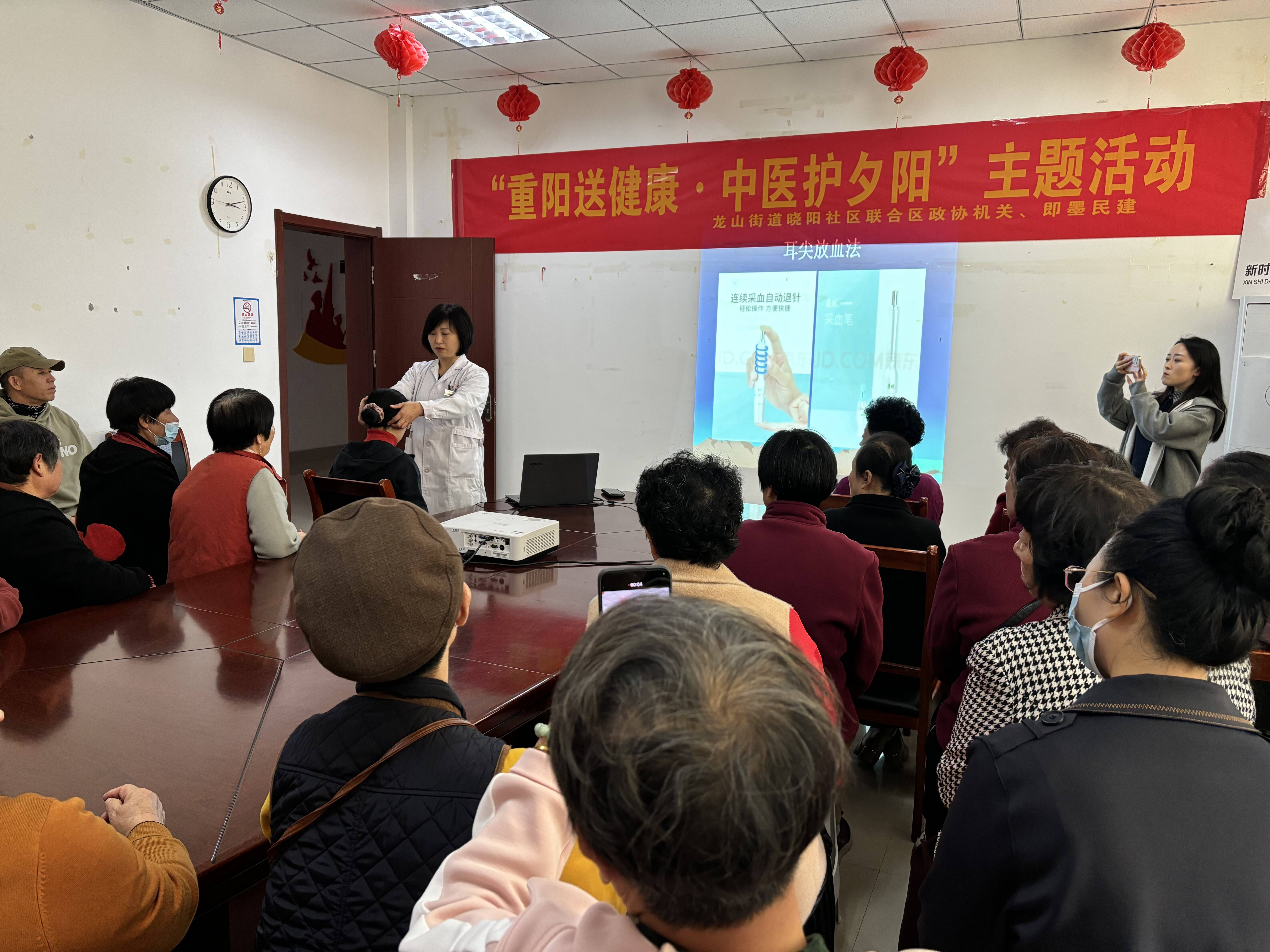 10月28日下午3时,龙山街道晓阳社区活动室内座无虚席,即墨民建“重阳送健康・中医护夕阳”活动在这里如期开展,社区的老人们早早来到现场,期待着这场“健康盛宴”。