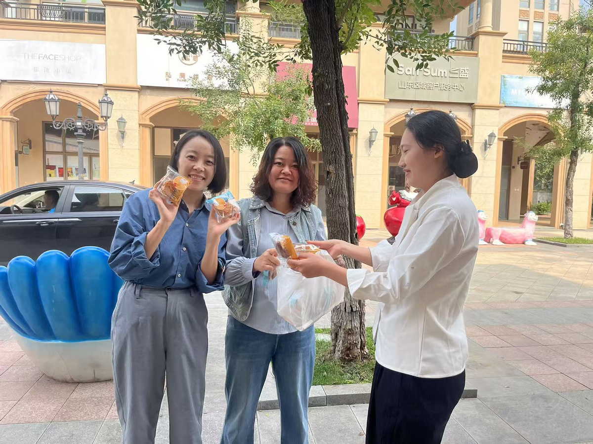 歌曲结束后,社区工作人员及文化志愿者为居民发放中秋月饼。一盒盒月饼传递的不仅是节日祝福,更是社区大家庭的温暖与邻里深情,居民们互相问候、畅谈交流,分享节日喜悦,邻里关系在欢声笑语中进一步升温。